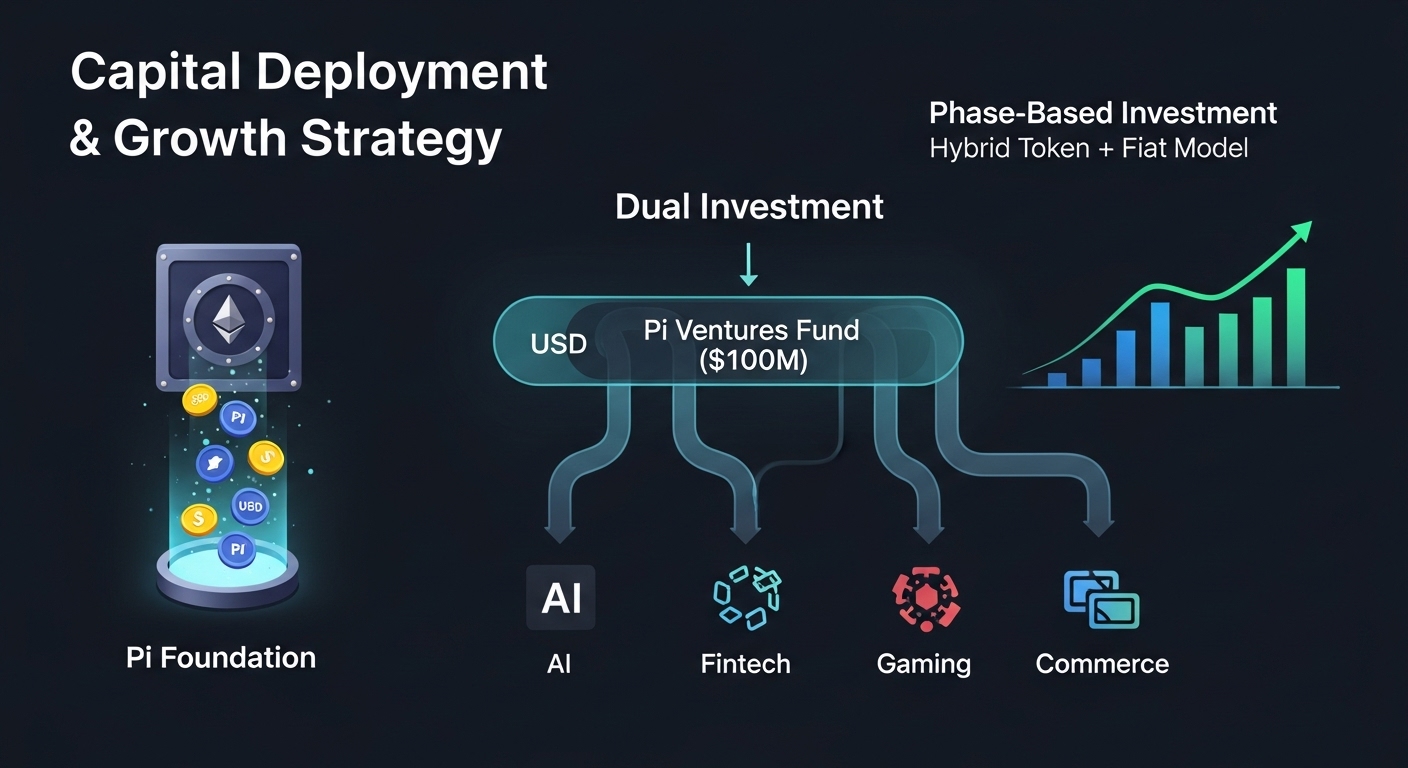 자본 구조는 Pi+USD 혼합 배분이며, Ventures는 **Silicon Valley VC와 유사한 실사 및 보드플레이드 방식**을 적용하고 있습니다. 투자 시 퀀텀 공식 설정은 발표되지 않았으나, 자금은 단계별/수시 배포 형태로 진행 중입니다.